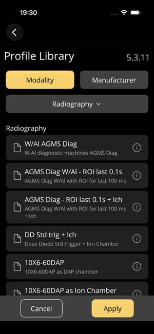 Accu-Gold Mobile is the official mobile application for IBA Radcal’s Wi-Fi–enabled X-ray measurement systems. It provides fast, wireless, and precise control of devices such as Accu-Gold T3 Pro, Rapid-Gold T3 Pro, Accu-Dose T3 Pro and the Accu-Gold Touch Pro family as well as the
