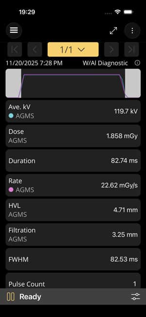 With real-time data visualization, remote measurement control, and built-in data storage and export functions, Accu-Gold Mobile streamlines X-ray QA, medical physics workflows, and service operations across all medical imaging settings.